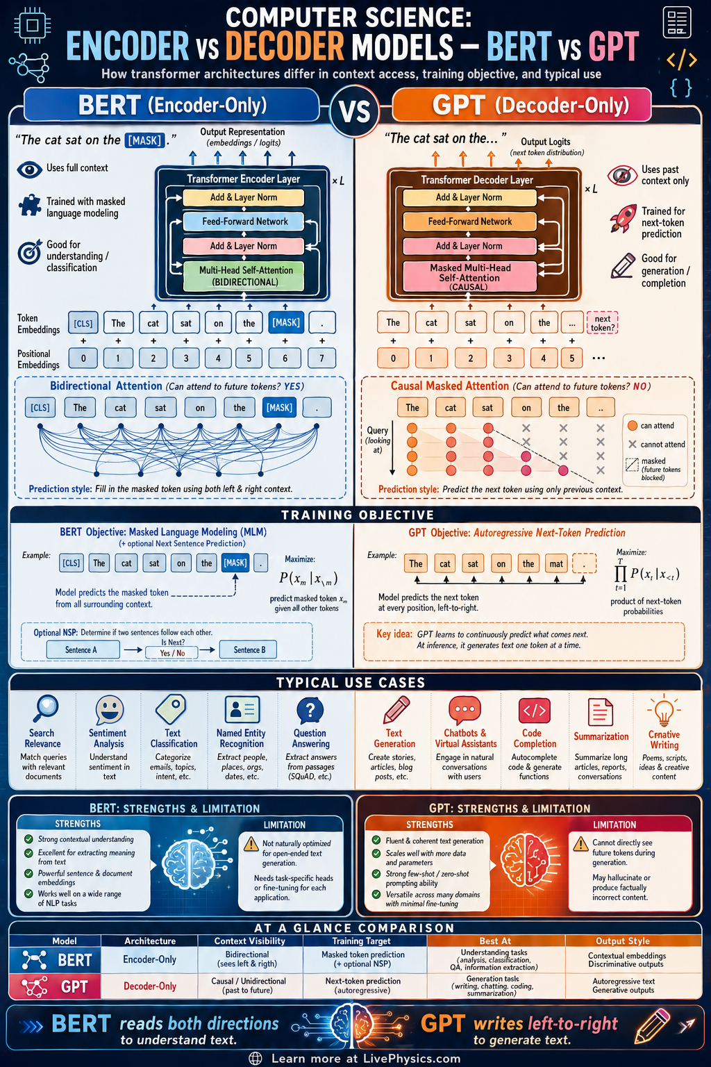 BERT vs GPT — Bidirectional vs Autoregressive