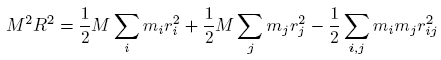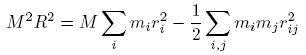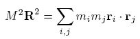Prove that the magnitude R of the position vector for the center of mass froman arbitrary origin is given by the equation: (Source: Herbert Goldstein, Classical Mechanics - Chapter 01) Solving for realize that . Square and you get Plug in for